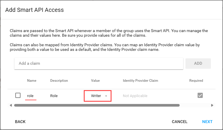 4. 修改role这一行的Value为Writer,使该组员用户具有读写权;